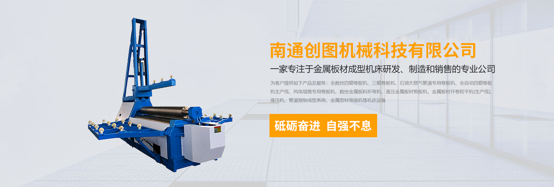 數(shù)控折彎機(jī),剪板機(jī),刨槽機(jī),全數(shù)控四輥卷板機(jī)、三輥卷板機(jī)、石油天然氣管道專用卷板機(jī)、全自動四輥卷板機(jī)生產(chǎn)線、風(fēng)電塔筒專用卷板機(jī)、金屬板材開卷校平機(jī)(生產(chǎn)線)、液壓機(jī)、管道預(yù)制成型系統(tǒng)、金屬型材彎曲機(jī)等機(jī)床設(shè)備,公司以精湛的設(shè)計(jì)能力,雄厚的加工制造能力,完善的售后服務(wù)能力,產(chǎn)品暢銷國內(nèi)20多個省、直轄市,并遠(yuǎn)銷德國、阿根廷、俄羅斯、印尼、伊朗等30多個國家和地區(qū)。